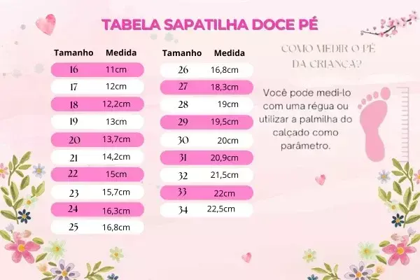 O destaque fica por conta dos apliques de flores, adornados com pérolas e pedras strass no miolo, trazendo o charme do Jardim Encantado para os pés da sua pequena. Além disso, os detalhes remetem ao Jardim das Borboletas e ao Bosque Encantado, criando um visual delicado e cheio de personalidade.