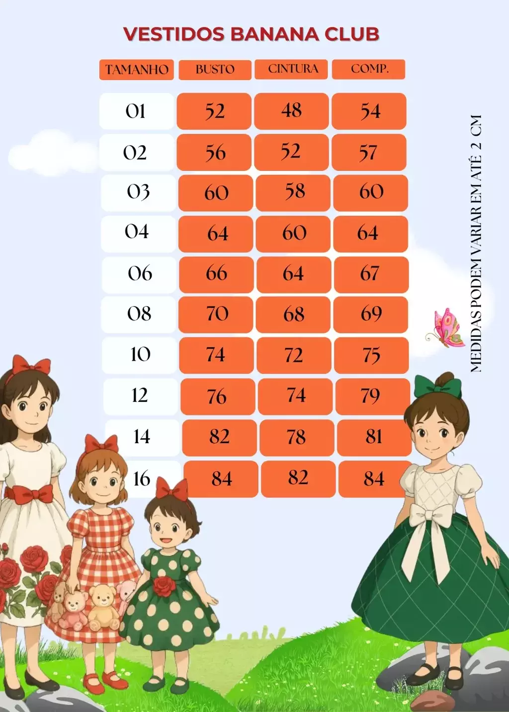 Medidas podem variar em até 4cm.