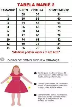 Confeccionado pensando no conforto, seu design delicado valoriza a graciosidade das crianças, garantindo liberdade de movimento e um caimento encantador. Importante: o vestido não acompanha tiara nem saiote.